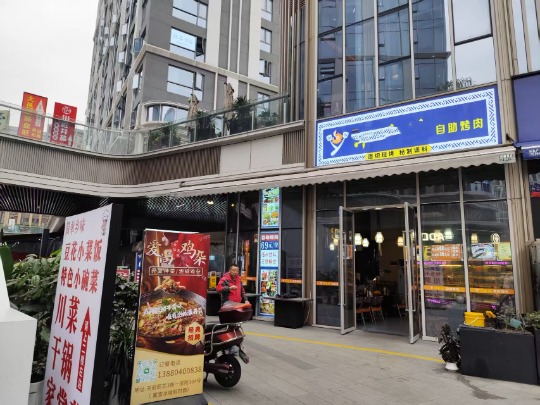 店铺面积100㎡(加外摆区域超三百平米,楼上还有阁楼),租金8000元/月(押一付三),转让费18万(整转),店铺现在经营的是餐饮烤肉店,店铺目前正常营业状态中,店内精装修,设备证件齐全。店铺属于转角店铺,门口一圈都可以外摆。在本商圈属于十是最好的位置。